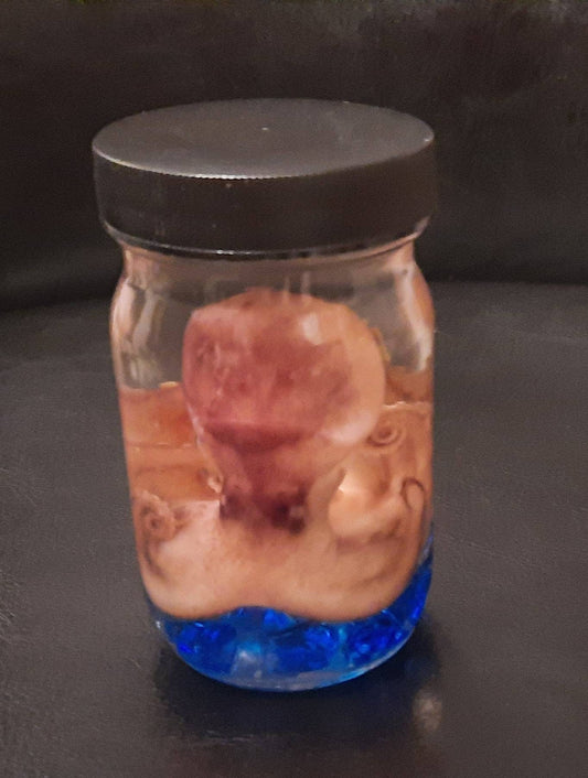 Octopus Wet Specimen glass heart jar Taxidermy Oddities curriosities red gems free ship