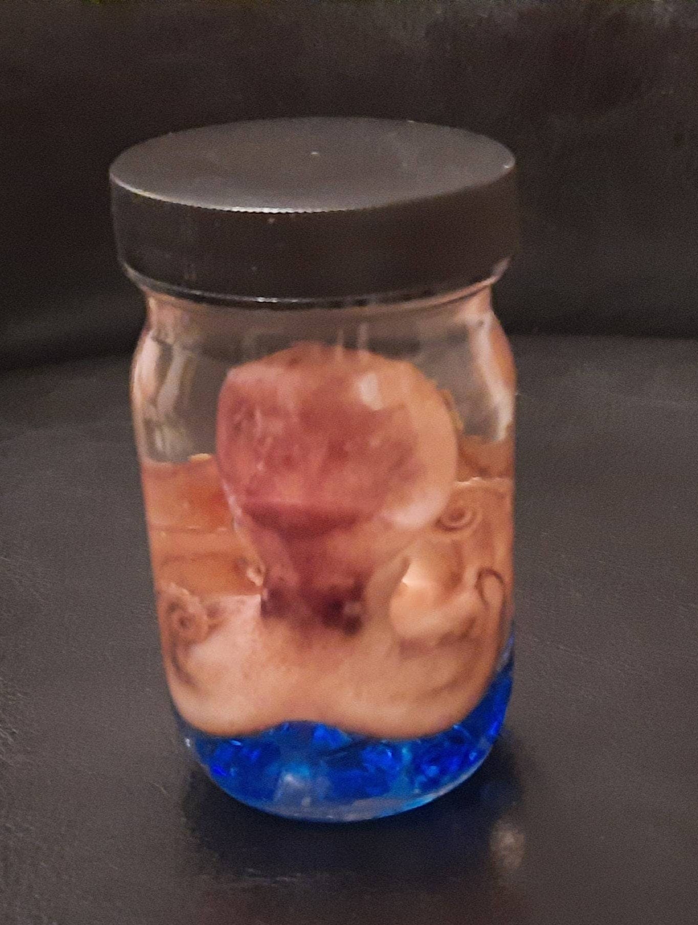 I usually SHIP WITHIN 24 HOURS Monday through Friday. You will receive a QUALITY Wet Specimen Octopus in a unique perfectly fitting glass jar with the glass embellishments on the bottom. The Octopus fits perfect in this Unique jar and the magnification is awesome as well. !t is professionally preserved and now set in a non toxic solution. The specimen will last forever. You will receive a quality octopus specimen as shown in photo or VERY similar as each octopus is unique and may vary slightly. The jar is 3.5 inches tall and comes complete with the non-toxic preservative solution. Each octopus varies somewhat as all are unique. Satisfaction Guaranteed. The Octopus is supplied to me by a sea food vendor - expired item - that would have otherwise been thrown out to rot. I have preserved the beauty of this awesome creature.